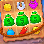 I Wild West Match 3 reiser du tilbake i tid for å hjelpe folk på grensen med å samle det de trenger for å klare seg, som pengesekker, dynamitt og cowboyhatter. Bytt og match symboler for å rydde brettet, lag sterke kombinasjoner og gå for tre stjerner på hvert nivå. Vis hvor god du er til å løse puslespill, tjen dine sporer og bli en ekte cowboy eller cowgirl blant de som matcher best.