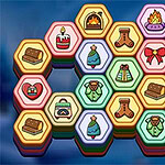 Koselig vinterpuslespill hvor du fjerner brikker ved å stable tre like heksagoner